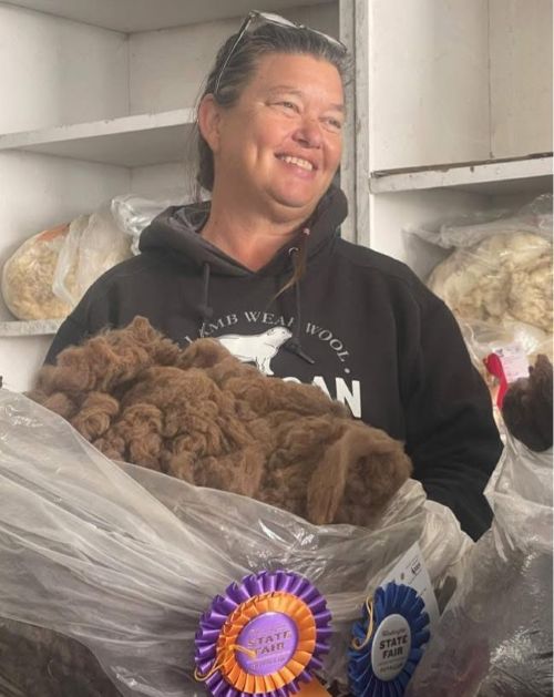 Katie began her sheep journey with a bummer lamb from her uncle when she was three and has grown her flock from there. Her goal is to encourage more youth to explore the wool sheep side of the industry.